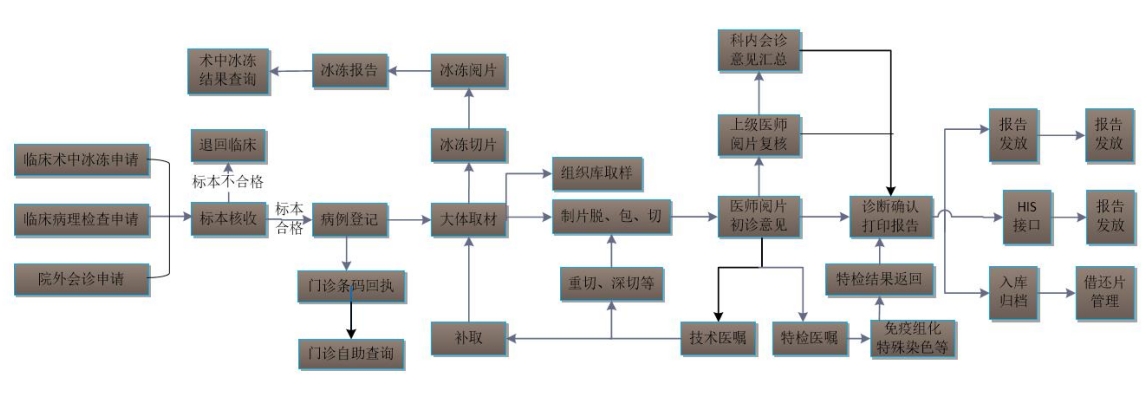 HY-PIS病理管理系統(tǒng)采用HL7、IHE等醫(yī)學通用標準及規(guī)范來完成與醫(yī)院現(xiàn)有信息系統(tǒng)(HIS、EMR、PACS 等) 的集成,實現(xiàn)患者從掛號到檢查的全電子化流程,實現(xiàn)病理申請單的無紙化,網絡化,信息化管理。